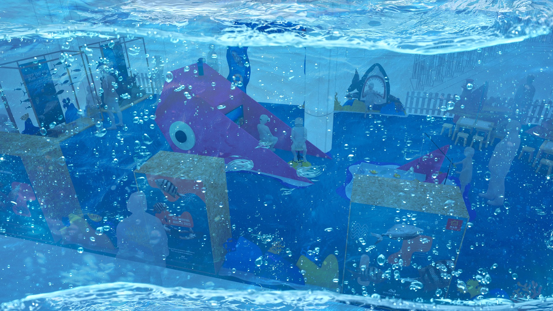 A abordagem assentou em três princípios que guiámos desde o início: aprender através do brincar (cada atividade tem uma componente pedagógica integrada, nunca imposta), imersão total (cenografia, narrativa e elementos interativos que transportam as crianças para o fundo do mar), e conteúdos com rigor (os módulos educativos foram desenvolvidos com base em informação científica, com potencial para validação por parceiros como a Sea Shepard).