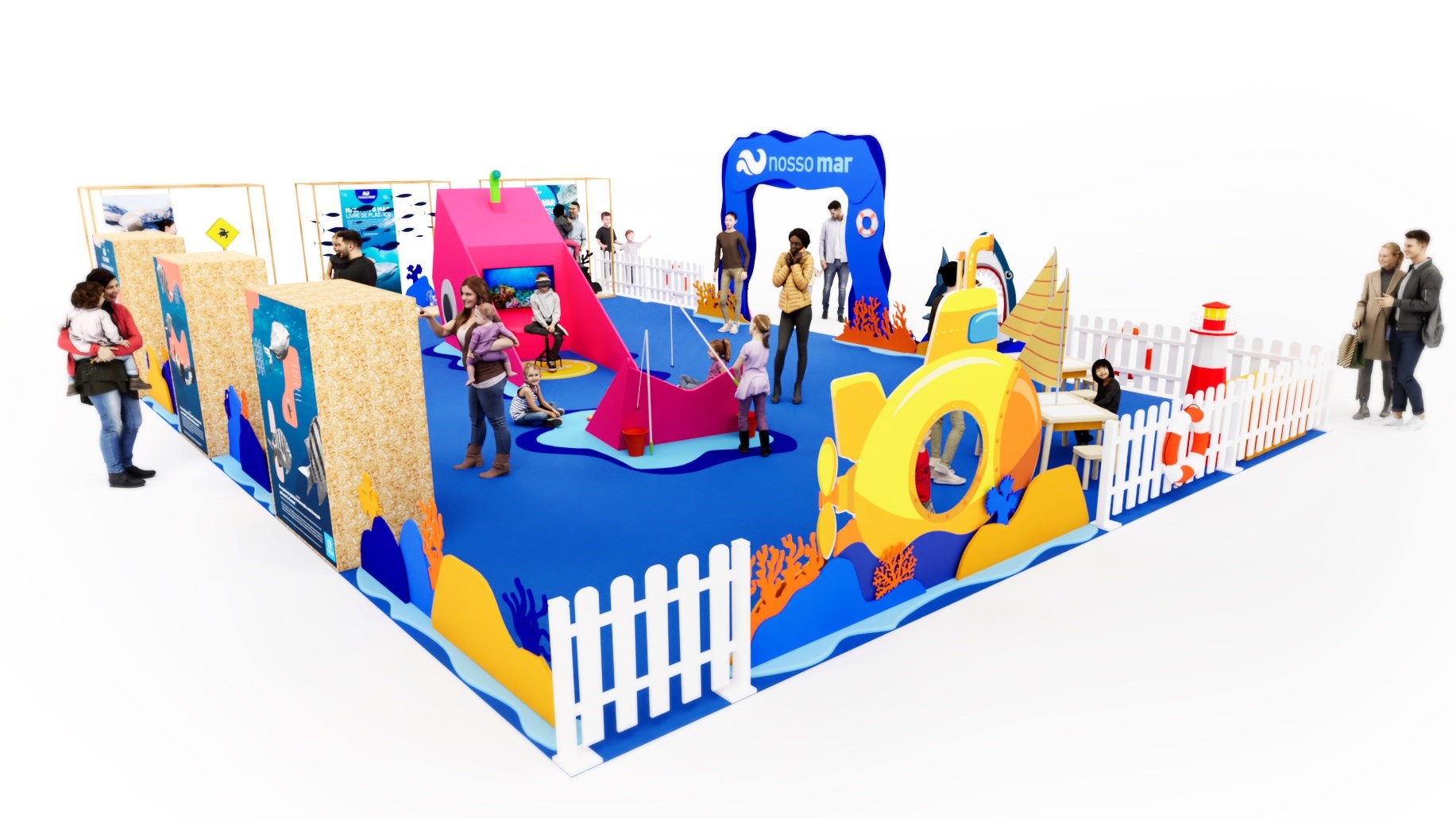 O Nosso Mar materializou-se num espaço imersivo com 9 estações de atividade, cada uma desenhada para combinar entretenimento com aprendizagem sobre a proteção dos oceanos: